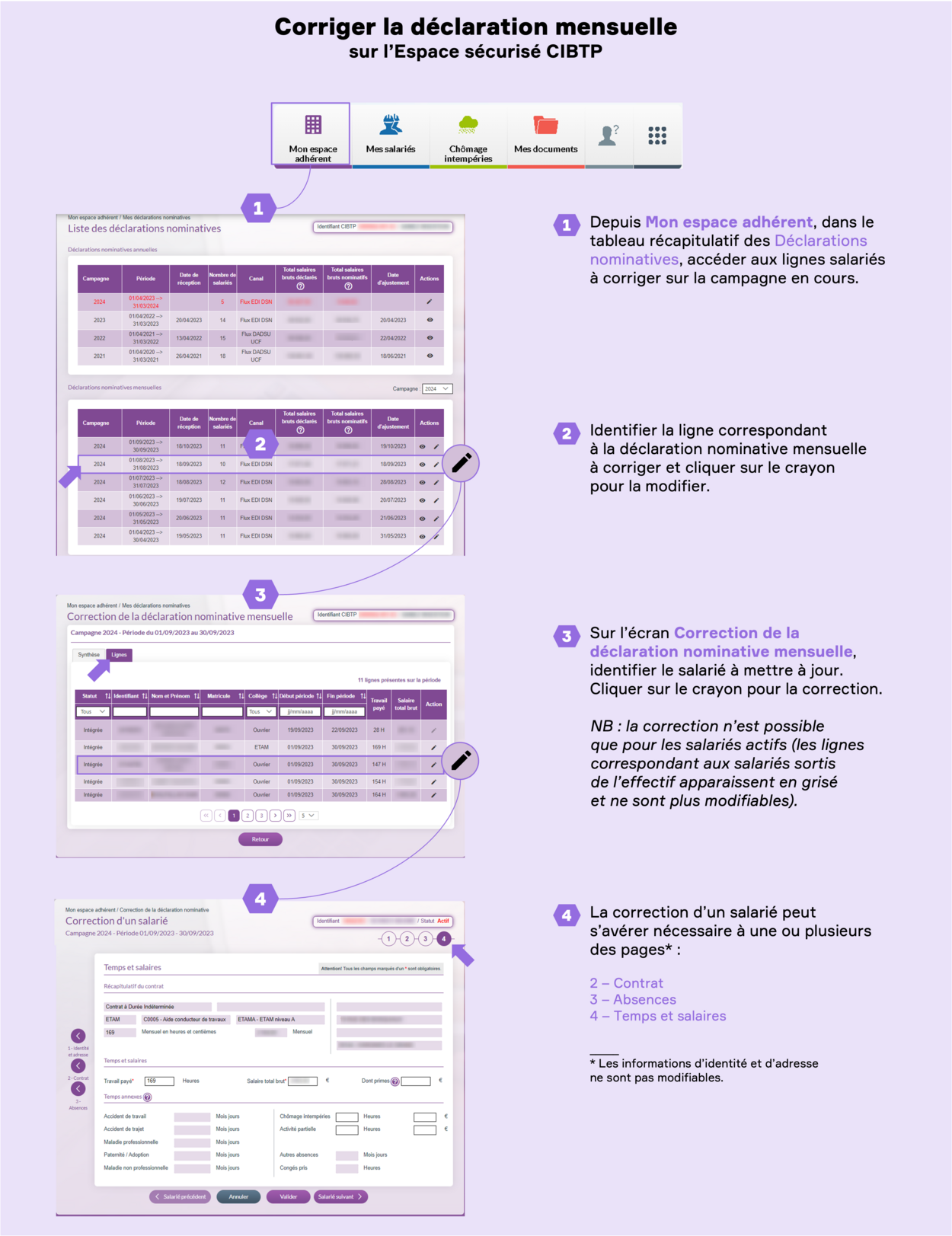 La correction des anomalies détectées lors de la consolidation annuelle s'opère depuis l'Espace sécurisé CIBTP